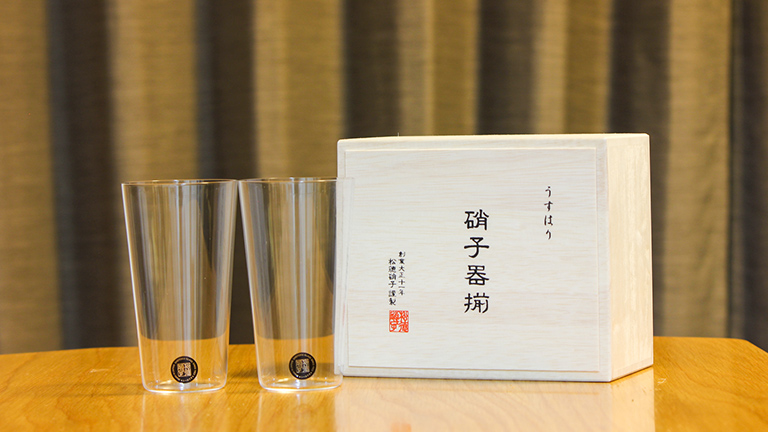 While the height of the glasses may differ, the difference in thickness is striking. The glass of an Usuhari tumbler is less than 1mm thick—much thinner than a typical beer glass.